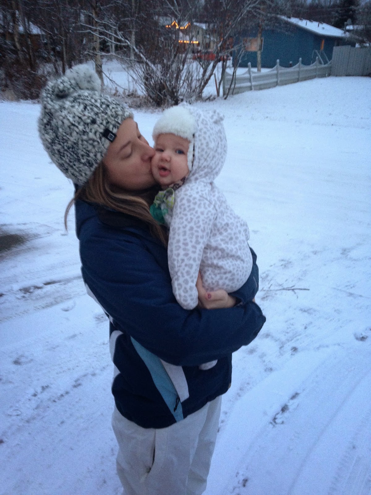 Yesterday, we bundled up the family, strapped Nora in the stroller, and walked down to the elementary school playground. We had about two inches of snow at that point and it made everything oh so beautiful.